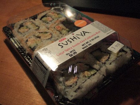 ちょっと食料品を選んだあと、売っていたお寿司の詰め合わせを。サーモンとまぐろの巻きものかな。4ドルしなくて安かった。この値段を考えると、HEBのは・・・(汗)