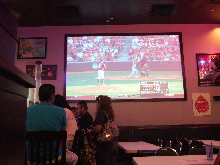お店の中の大画面。これはテレビじゃなくて、プロジェクターで写されていて、若干うすかったけど、満足。めっちゃいい席で見れてラッキーだったな~☆