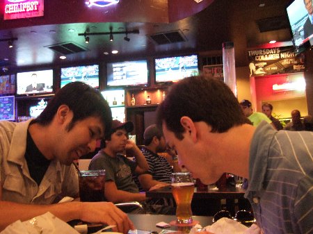 そして、昨日に引き続き、ビールを。今日は夏限定のSamuel Adamsを。う~ん、やっぱりBoston Lagerが好きかな~。ちなみに、こんなふうにビールをオーダーすることできたんだけど、人数がそんなにいなかったので今回はグラスにしたんだけど、