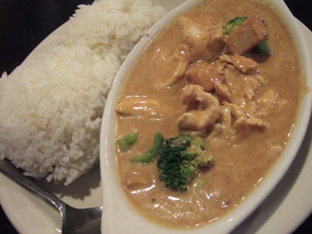 注文したのは、ピーナッツソースカレー。ググってみたものの、どこが起源なのか謎。Wikiによれば、フィリピンで、見たいくつかのブログでは、インドとなっている。ちなみに、その店では、タイ料理にカテゴライズされていたんだけど。ひとまず、不思議な味で、あんまり好きな感じではなかった。