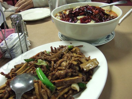 オフィスの中国人によれば、料理の名前は『水煮魚』、『香干肉絲』。